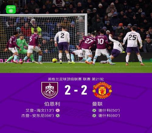 剑南春曼联客场22伯恩利遭三连平,谢什科双响,海文乌龙